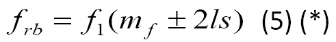 Pojawienie się obustronnych pasm bocznych wokół częstotliwości ƒ1 jest równoważne procesowi modulacji prądu fazowego. Prawostronne i lewostronne pasma boczne wokół częstotliwości podstawowej w widmie prądu stanowią więc podstawę diagnozowania uszkodzeń prętów wirnika i pierścienia czołowego (rys. 7, częstotliwość poślizgu ƒs jest równa iloczynowi podstawowej częstotliwości zasilania ƒ1, a także poślizgu s, częstotliwość ƒw jest częstotliwością obrotową [...]