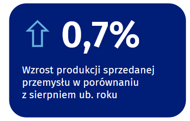 Spadek produkcji sprzedanej przemysłu, w porównaniu z sierpniem ub. roku, wystąpił w 17 działach, m.in. w produkcji napojów – o 11,0%, w wytwarzaniu i zaopatrywaniu w energię elektryczną, gaz, parę wodną i gorącą wodę – o 6,7%, w produkcji chemikaliów i wyrobów chemicznych – o 6,1%, pojazdów samochodowych, przyczep i naczep – o 4,2%, urządzeń elektrycznych – o 3,1%, papieru i wyrobów z papieru – o 2,7%.