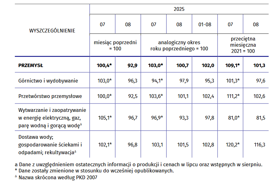 Dynamika produkcji sprzedanej przemysłu w sierpniu 2025 r.